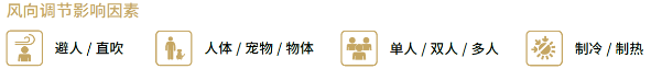 AI自动控风技术*可以依靠AI智慧眼功能实时检测人的体表温度、位置、人数,进而四翼3D纵横百叶在3~5秒内快速做出风向调整,根据人员的不同活动变化及时调整风向,实现避人吹或直吹。
