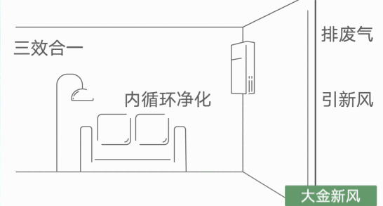 大金转角卫士新风净化系统集引新风、排废气、室内净化三效合一,可以通过高精度传感器精准感知室内、室外PM2.5和室外温度,自动调节三种气流比例,安静又节能,解决各类空气品质带来的问题。