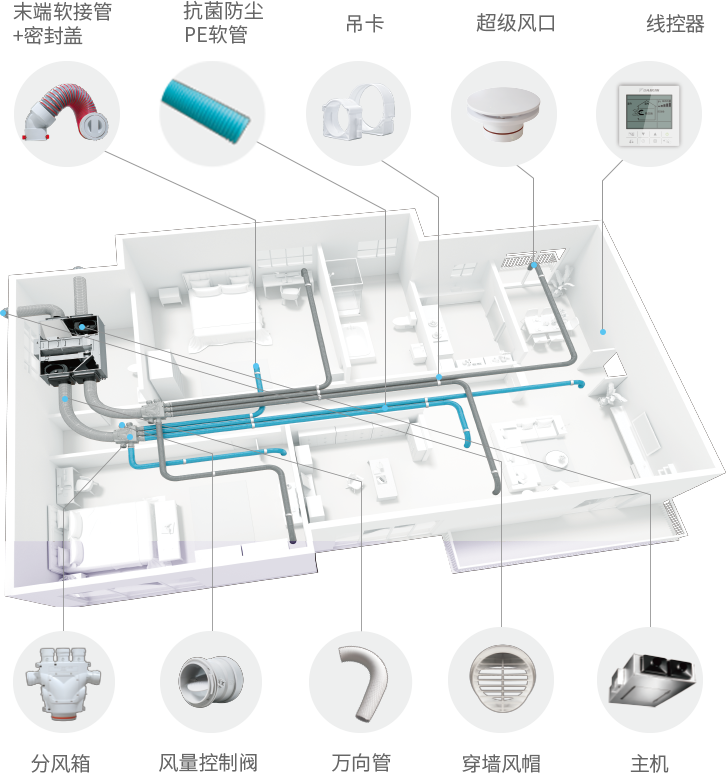 可分别控制进风、排风,管道施工完成后也可根据实际安装情况调整静压