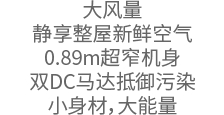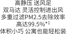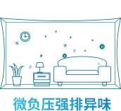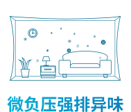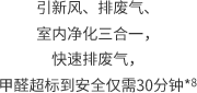 *8 条件:面积16㎡,层高2.7m,室内有持续散发甲醛的物体,密闭12h效果;开启“排废气”模式,30min后甲醛浓度由0.25mg/m³降至0.08mg/m³