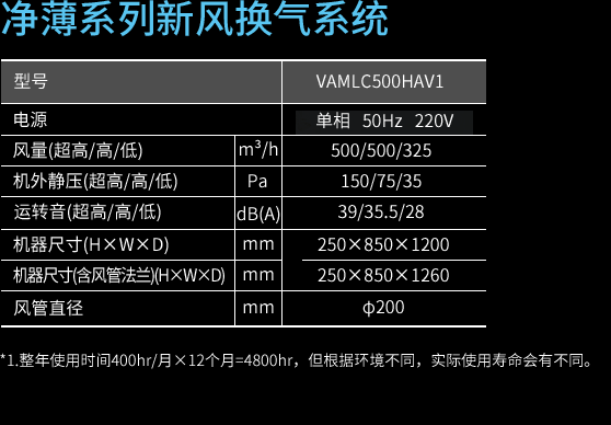 *1 检测机构:上海市建筑科学研究院;检测依据:空气过滤GB/T14295-2008;检测机种:AML150HV1
