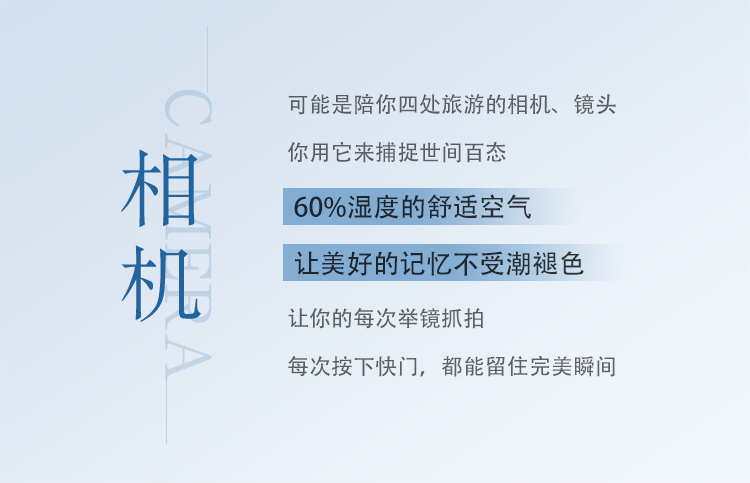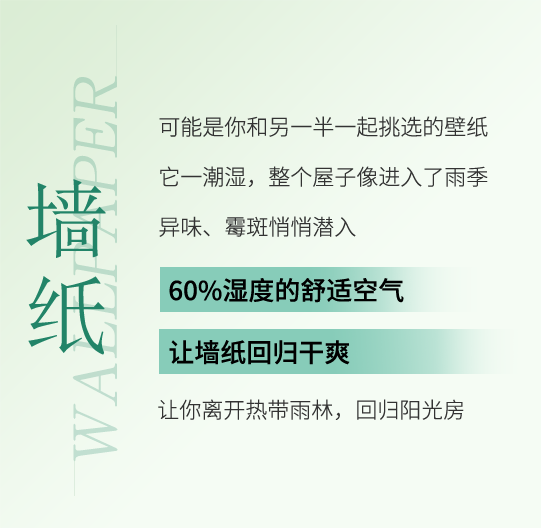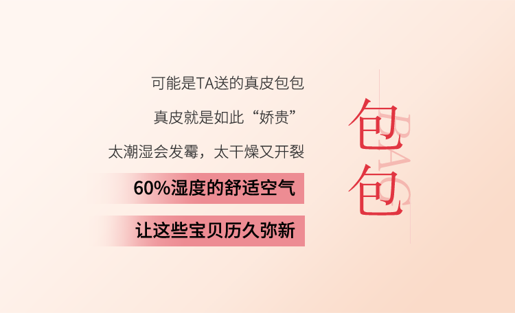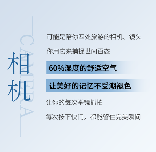 *(常温下)控制在60RH%以下不利于霉菌的生长,特殊物品的保存遵照相应的温湿度要求,建议在密闭环境和小于20平方的空间使用,可根据不同湿度要求开启不同除湿模式。