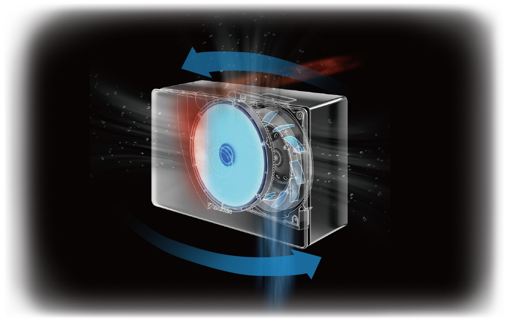大金特有的不等距风扇设计,优化气流分布,帮助沸石盘高效吸湿同时减少共振,降低室内噪音。